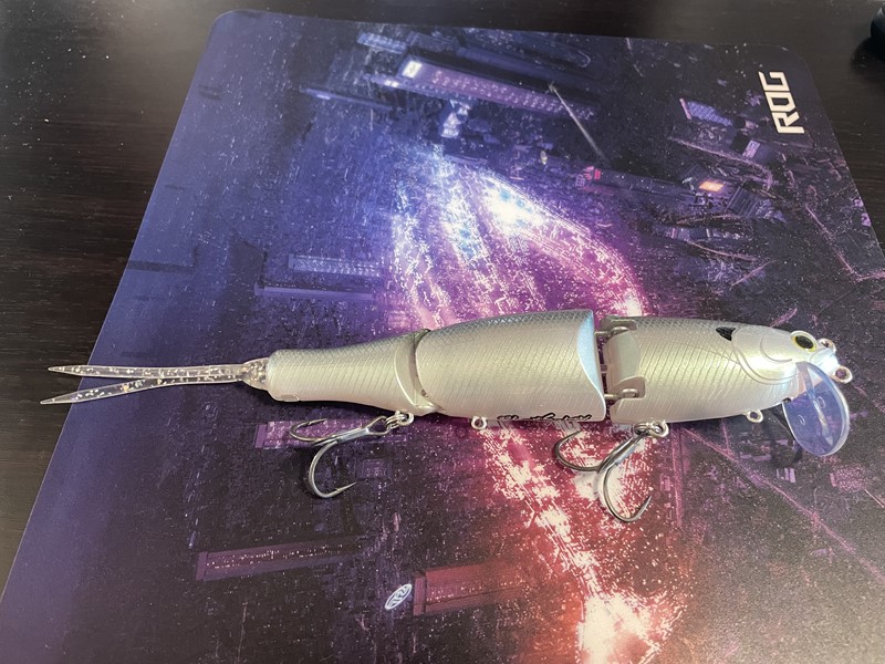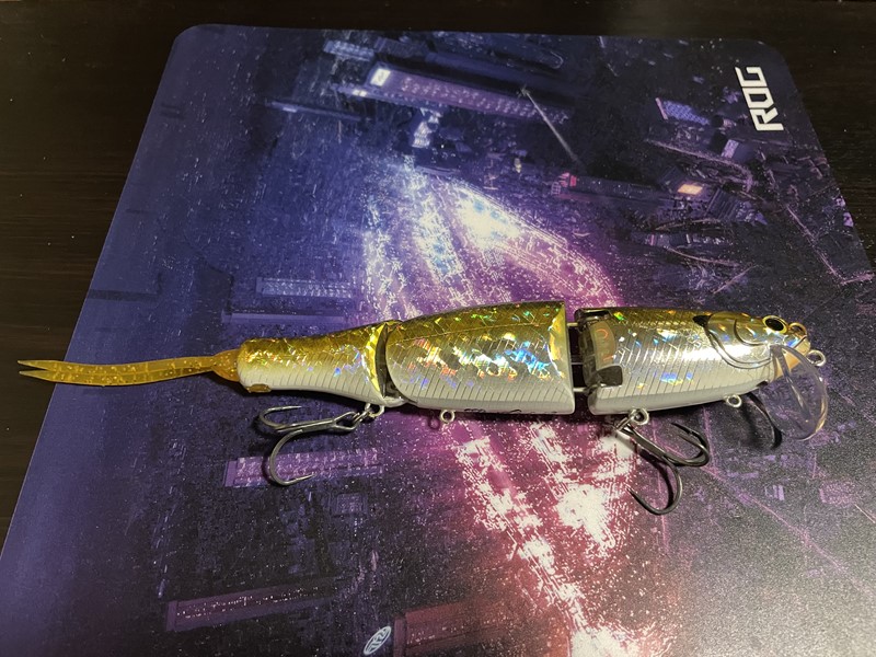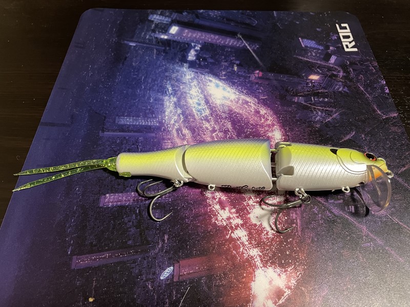 ミブロのアダプトスイマー160を購入してみました。カラーはギザードシャッドです。全長:160mm(テール含まず)、重量:50g、付属シンカー:Owner/Cultiva "一手TGシンカー"