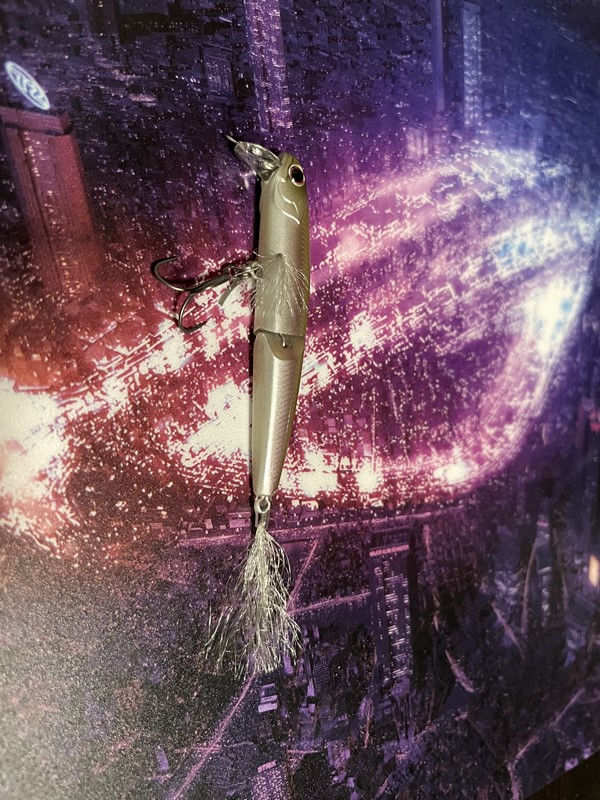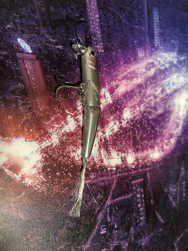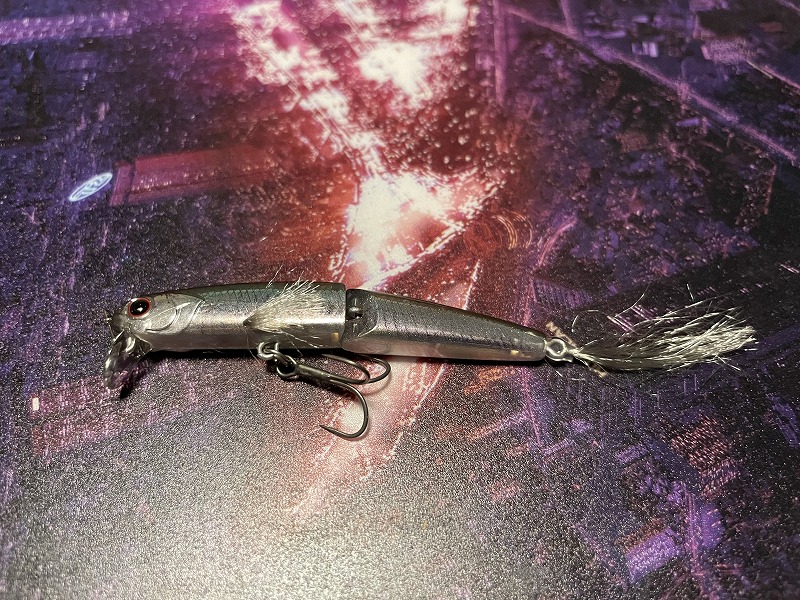 胸にあるヒラヒラはフックではなくルアーの両脇についています。お腹はシルバーですが光沢がなくマットな仕上がりです。