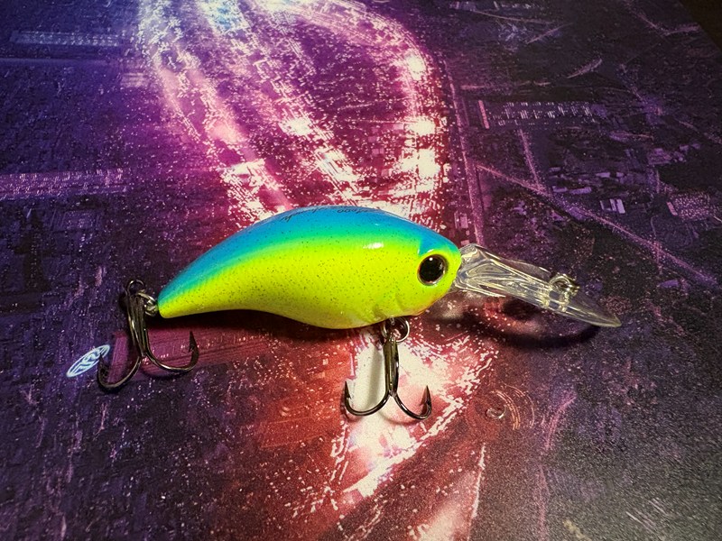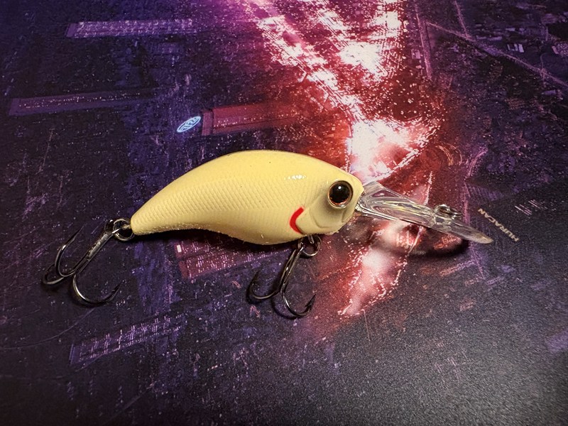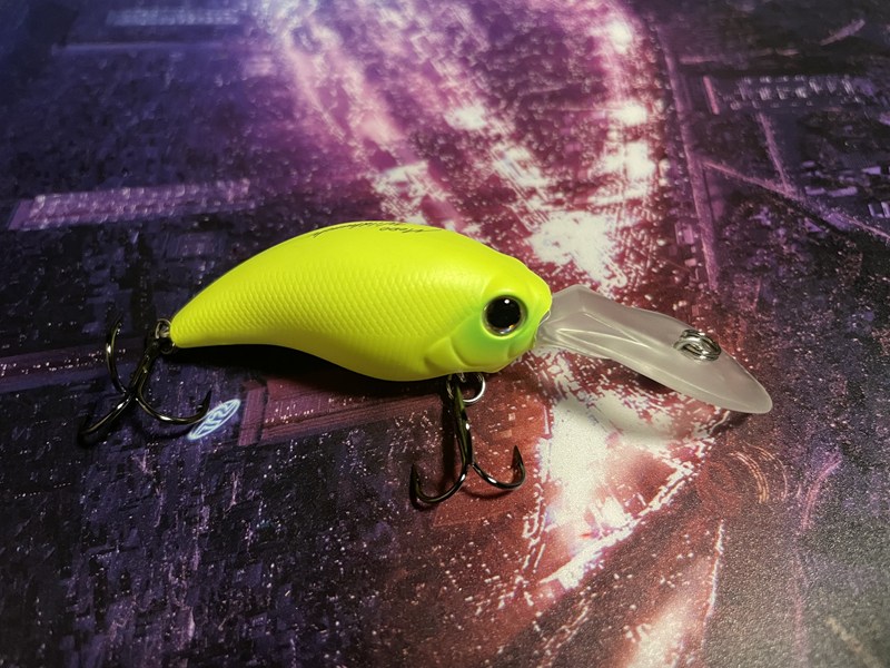 カラーはマットチャートです。長さは5.2cm、重さは9.6g、潜行深度は1.2-1.6mです。