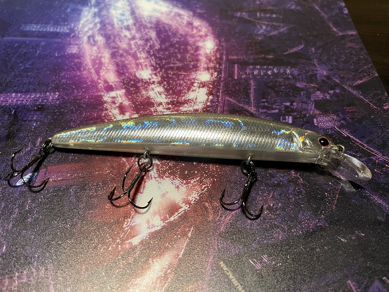 カラーはHFワカサギです。全長:113mm、重量:14.2g、タイプ:フローティング