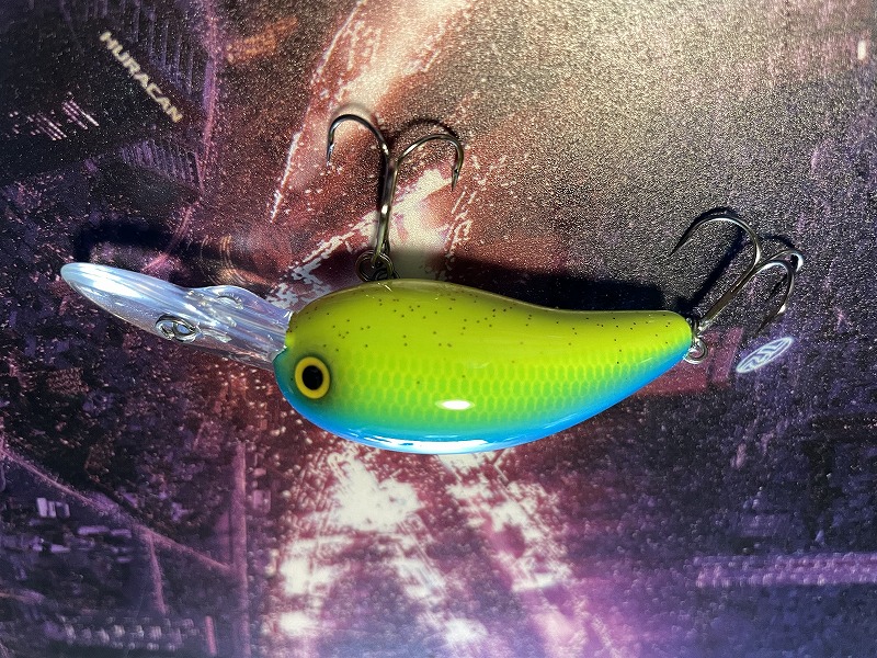 Tiny PeanutII DR 長さ40mm、重さ4.5g、潜行深度1.5mです。カラーはスプラッターチャートです。