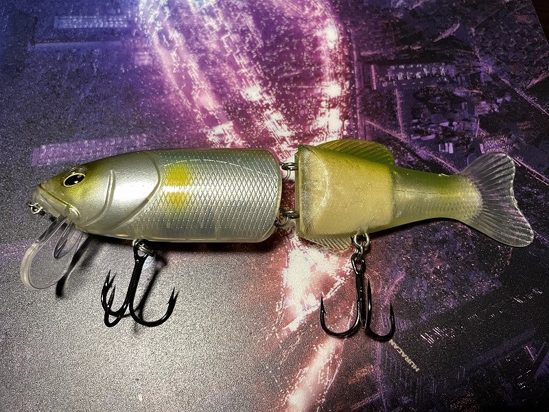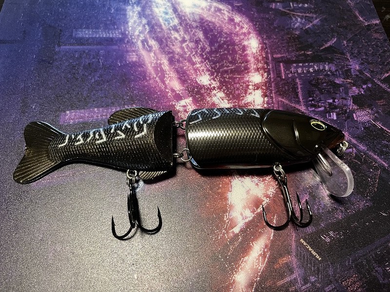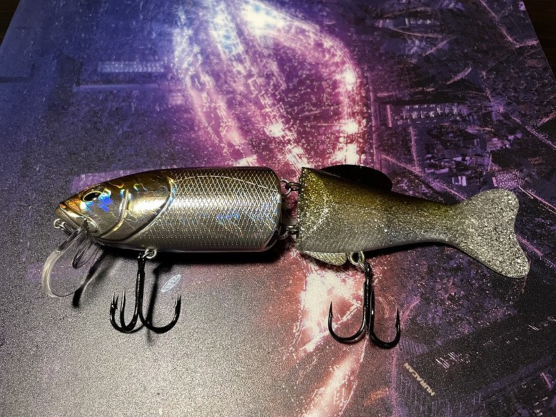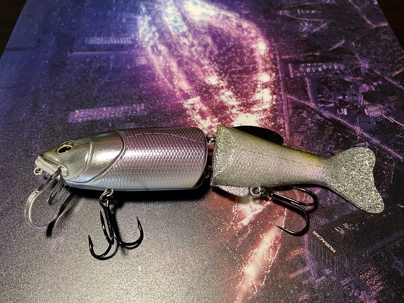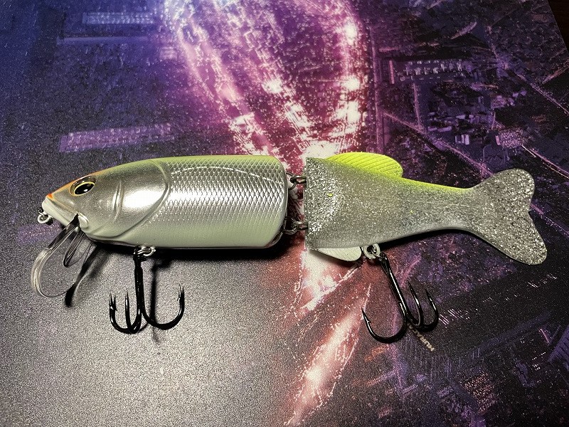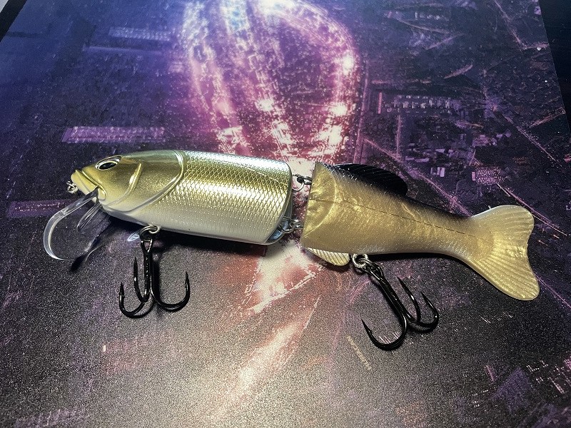 Finish Blow 160 はビッグベイトルアーです。ハード素材の前半身とワーム素材の後半身を組み合わせたハイブリッドボディが特徴です。前のボディはプラスチックでキレある動きで、後ろのボディは柔らか素材でのため艶めかしい動きをします。連結部にスプリットリングを使用しているため、軽い力でも複雑なアクションを出せるようになってます。ハイフロートのため、シチュエーションに応じてウェイト調整します。