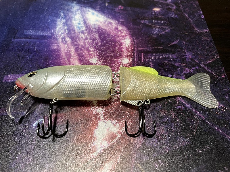 基本はスローリトリーブ+ロッドシェイクです。一定速で巻きながら軽くティップを震わせると、前半のハードボディが水を受け、後半のソフトテールが艶めかしく左右に揺れ、弱ったベイトを演出できます。ドッグウォークも可能で、表層で首振りさせるとビッグバスへの視覚アピールが強力です。活性が低い時は巻かずにシェイクだけで一点誘いも有効です。